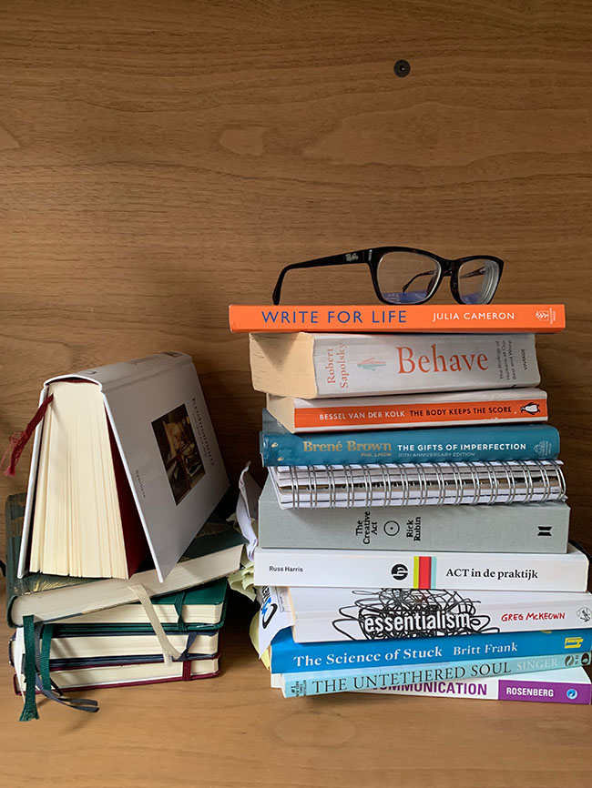 Na een uitgebreide zoektocht en investeringen in diverse opleidingen, therapeuten en coaches heb ik geleerd mezelf te steunen en ben ik moedig genoeg om dingen te doen en te maken waar ik blij van word.